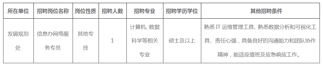 招聘岗位:信息办网络服务专员